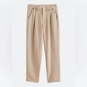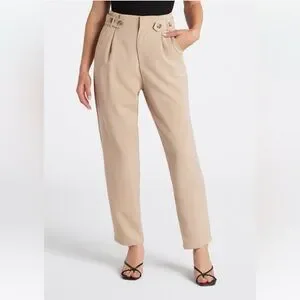 Chic beige trousers with stylish button accents. Ideal for versatile styling.