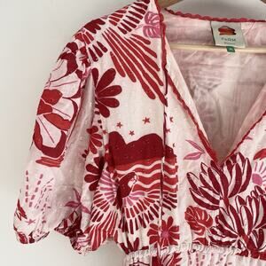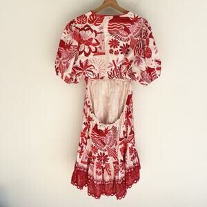 Farm Rio Tiles Red Floral Puff Sleeve Open Back Cotton Mini Sundress Size XL