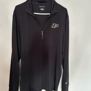 Purdue University long sleeves pullover shirt Features quarter-zip and logo accents. Perfect for casual wear.