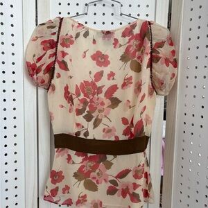 BCBGMaxAzria Floral Blouse - Cream and Pink
