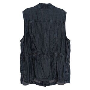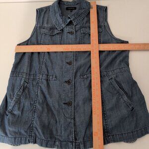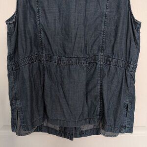 Talbots Womens Blue Chambray Chore Utility Sleeveless Button Front Vest Size XL