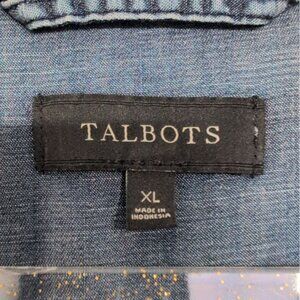 Talbots Chambray Utility Vest Womens Size XL Blue Chore Sleeveless Button Front