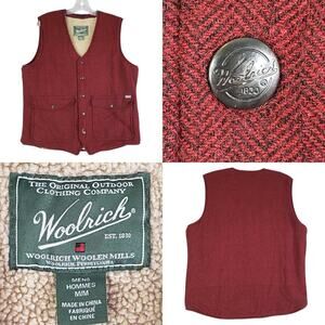 Woolrich Vest Sherpa Fleece Lined Burgundy Wool Gilet Mens Size M Medium Snap