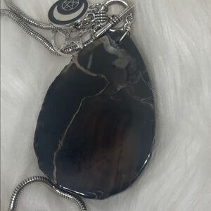 Witchy Black Agate Slice Toggle Necklace with Silver Tone Fluid Chain