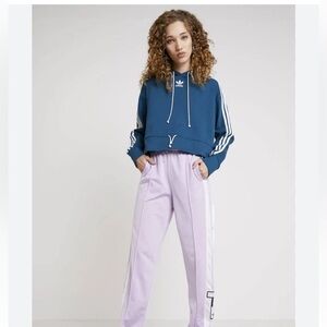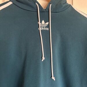 Adidas classic stripe turquoise cropped long sleeve hoodie size Large
