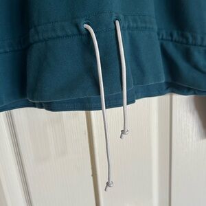 Adidas Classic 3 stripe hoodie in dark turquoise / aquamarine. Has contrasting cinch Thai at waste, embroidered logo, and a hood. Slightly cropped cut as pictured.