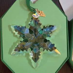 Stunning Swarovski snowflakes in elegant green cases. Ideal for festive decoration.