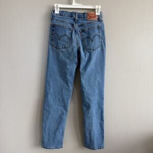 Levis Wedgie Straight Jeans Womens 28 High Rise Medium Wash Stretch Button Fly