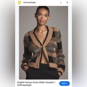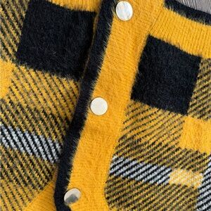 ENGLISH FACTORY YELLOW AND BLACK PLAID CARDIGAN