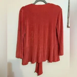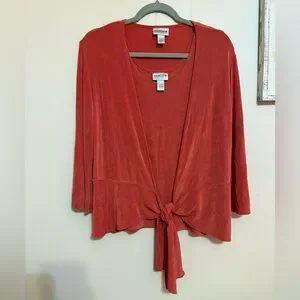 Chico's vibrant top with a stylish tie-front design. Ideal for versatile layering. Chico’s size 1 or M/8. Size chart in pictures.