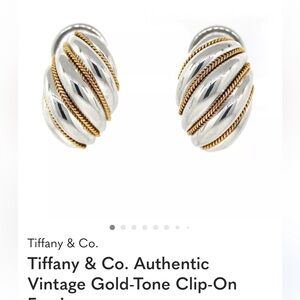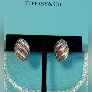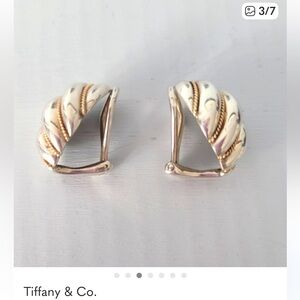 Vintage Tiffany & Co. clip-on earrings with a gold rope design on a sterling silver shell like swirl. Ideal for a sophisticated look.