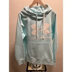 Wrap yourself in cozy comfort with this light aqua blue Under Armour hoodie. The iconic large white logo boldly accents the chest, showcasing your athletic style. Designed for a relaxed, loose fit, this hoodie offers unrestricted movement and ultimate ease, perfect for layering or wearing on its own. Its plush feel invites you to unwind after a workout or simply lounge in style. Elevate your casual wardrobe for weekend errands or relaxed evenings at home.