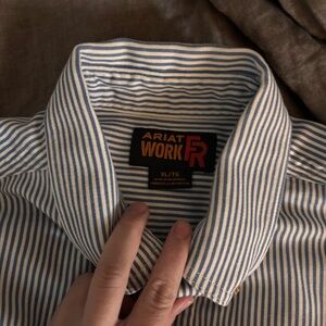 Ariat Men's FR Blue and White Striped Button Down Shirt
