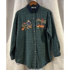 Vintage Plaid Fall Embroidered Button Up Plus Size 18W