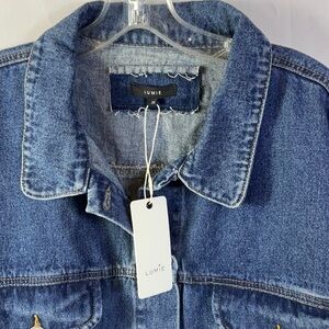 Lumie Denim colorful knit sleeves button down jacket, size 3X