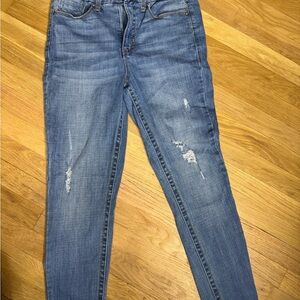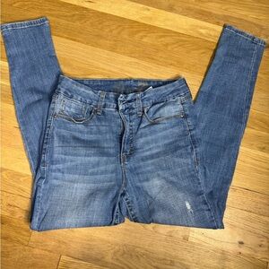 High-rise skinny jeans with distressed details #distresseddenim