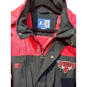 Chicago Bulls 90s STARTER puffer "Baby Calf" jacket XL black red NBA basketball retro vintage
