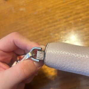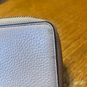 Has a clear pocket for id, a section for cash, a zippered section for change, a pocket that can fit an iphone (my iPhone 14 fits), and other pockets for card