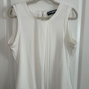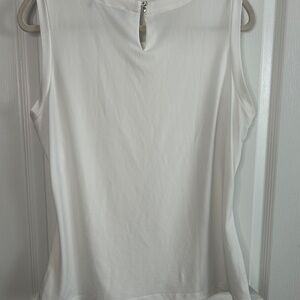 Elegant Karl Lagerfeld Paris sleeveless blouse in crisp white with a clean, modern silhouette. Perfect as a stand-alone top or layered under blazers and jackets. A timeless wardrobe essential.