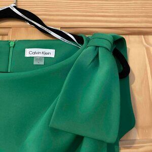 Beautiful, knee-length cocktail Calvin Klein dress with shoulder bow. Perfect for holiday and cocktail parties. Never worn, new with tags. Professional photos to show style only - dress is green.