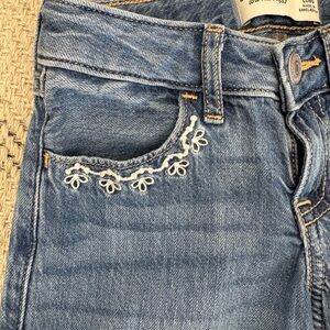 Abercrombie Girls low rise baggy jeans. With flower detail on pockets.