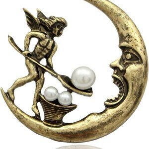 Vintage Golden Antique Tribal Angel Fairy Feeding Moon Cresent Simulated - Pearl