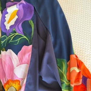 Borgo de Nor's founders cite Frida Kahlo's art as a source of inspiration for their powerful, bold prints, like the one on this 'Capucine' dress. Cut from fluid crepe de chine, it has wide sleeves and a high slit along the side. The crystal-encrusted neckline gives the dress extra sparkle.