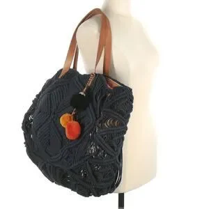 STAR MELA Marga macrame tote oversized cotton shoulder bag navy boho purse NEW