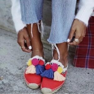 Espadrille Slides Tassel Soludos Pom Red Yellow Blue Colorful Loud Size 8.5