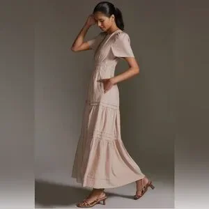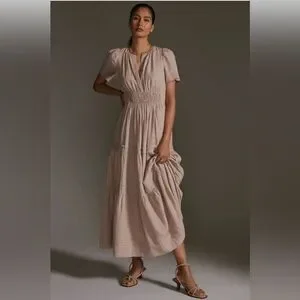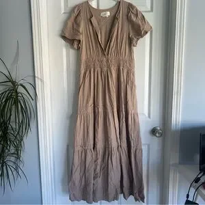 🤎 Anthropologie The Somerset Tan Maxi Dress Linen Blend