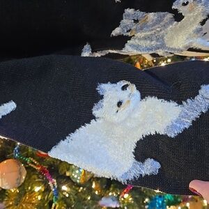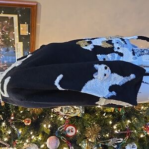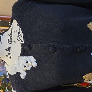 Chic black sweater featuring a playful animal pattern. Perfect for adding a touch of fun to your wardrobe. Covered buttons. Ramie, Cotton and Nylon.