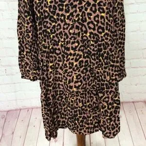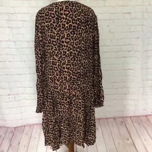 LOFT animal print long sleeve dress. Size medium. This dress has seven gold buttons in the front as well as a gold button at each sleeve cuff. Made of 100% viscose. Machine washable. New without tags. Smoke free home.
