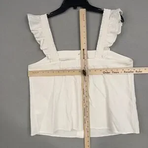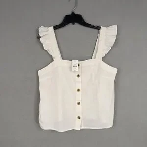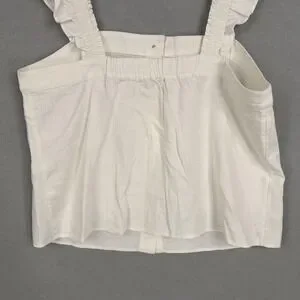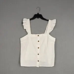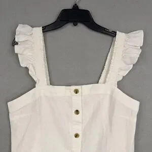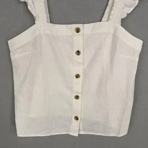J Crew Shirt Womens Large White Linen Blend Ruffle Strap Button Front Tank