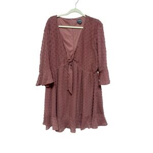 Arula B Mauve Textured Tie Front Bell Sleeve Mini Dress 2X NWT