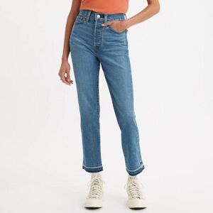 Levi’s “Wedgie Straight” Blue Jeans with raw hemline and a button fly