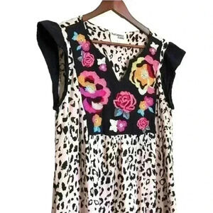 Savanna Jane Leopard Babydoll Dress A Line Swing Floral Boho 90s Medium in Excellent pre owned condition