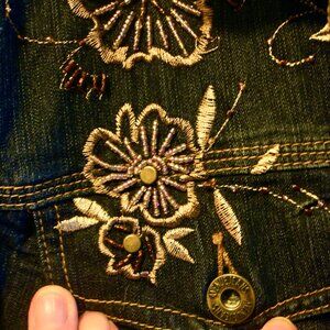 Avenue Size 22/24 Jean jacket with embroidered wit metal and beaded accents.