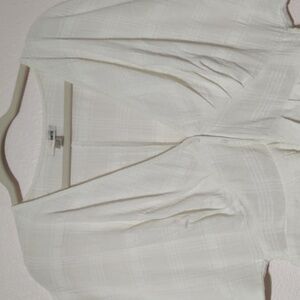 Amuse Society White Gauze Pattern Deep V Neck Button Down Wide Arms Dress Size L