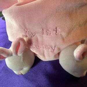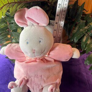 It is a soft, pink plush toy with the words "My 1st Bunny" embroidered on the front.