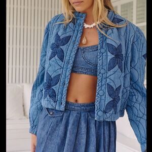 Free People Quinn Quilted Jacket Indigo Combo