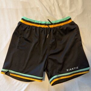 Kinetic White Athletic Shorts with Blue Stripes