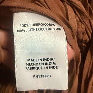 Stylish brown sleeveless top with fringe details. Perfect for a boho look.