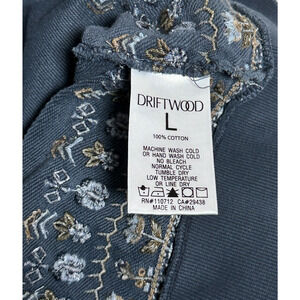 Driftwood Blue Teddy Rose Patchwork Embroidered Hooded Zip Sweatshirt Large