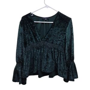 American Eagle Velvet Peplum Babydoll Emerald Green Romantic Blouse Size Small
