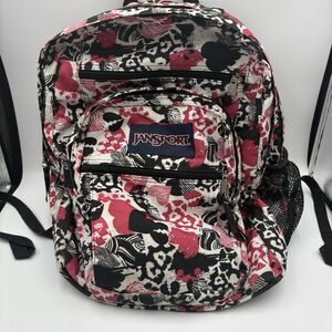 Jansport Mini Backpack Day Bag Hearts Black Pink