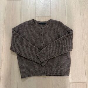 Relaxed-fit crewneck cardigan.