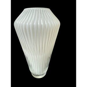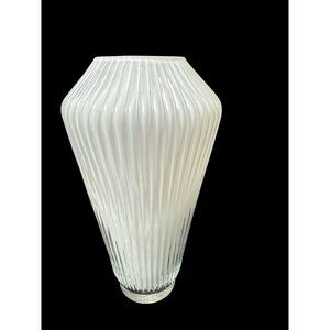 Elegant ribbed glass vase with a timeless frosted white finish. Hand-blown craftsmanship adds charm to any decor setting. Ideal for showcasing floral arrangements.