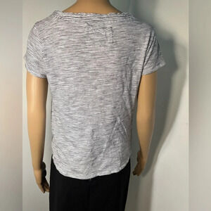 Cupio, M, black &white stripe, short sleeve, crewneck, cropped tie knot top.