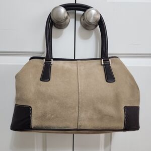 Vintage The Limited Tan Suede / Brown Leather Trim Tote Handbag