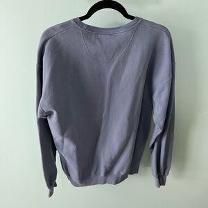 Champion sweatshirt featuring an Australian shepherd animal graphic. Soft blue fabric.